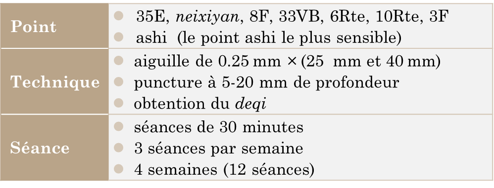 Protocole d’acupuncture (d’après Wang ZY et al., 2026)